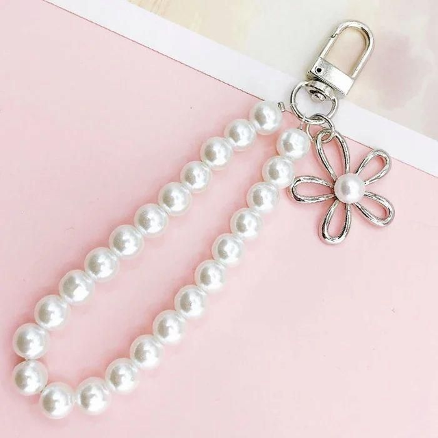 Porte-clés ou pendentif de sac pour femme en alliage perlé : fleur